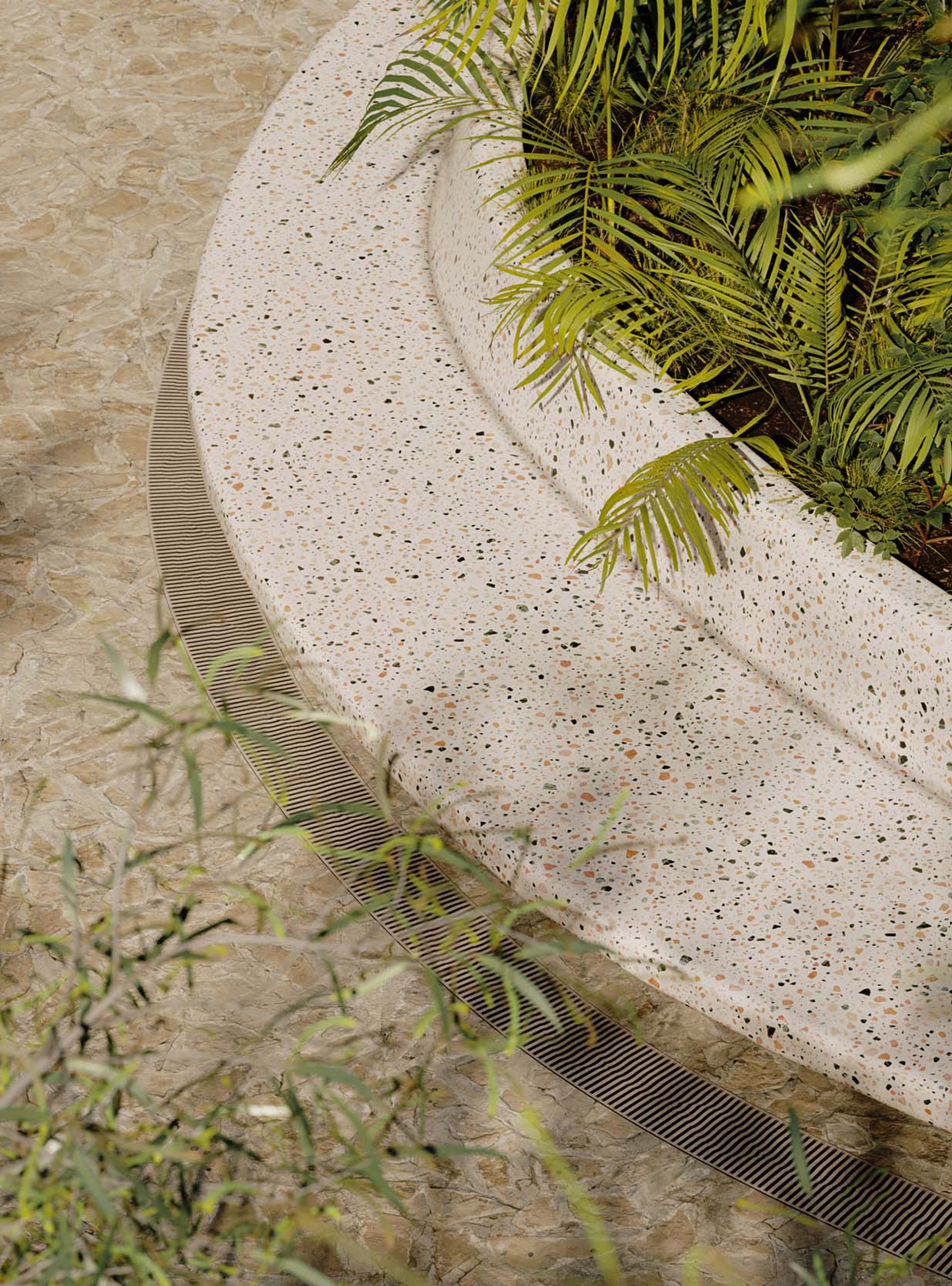 Decorative trench grates made from natural aggregates. Consciously crafted + fully customisable.