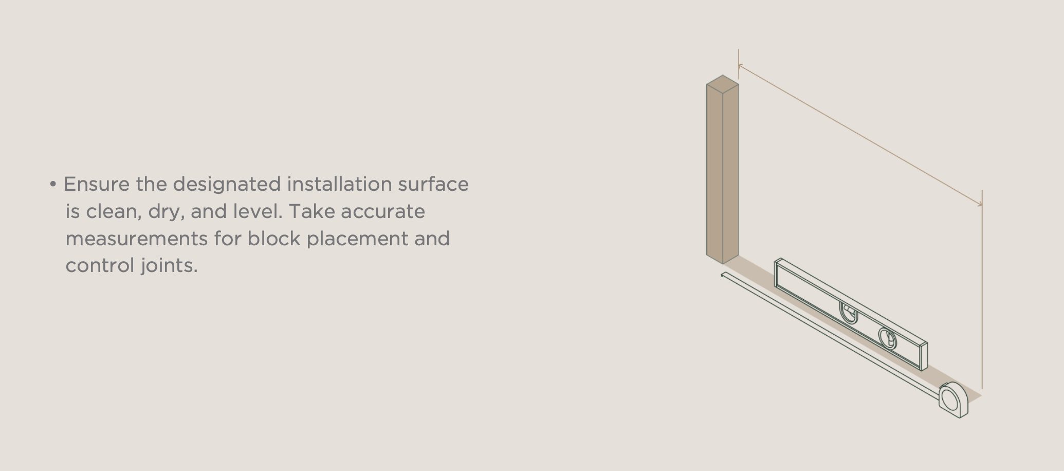 - Accurately measure and mark out the positioning of blocks and control joints, establishing a clear roadmap for installation.