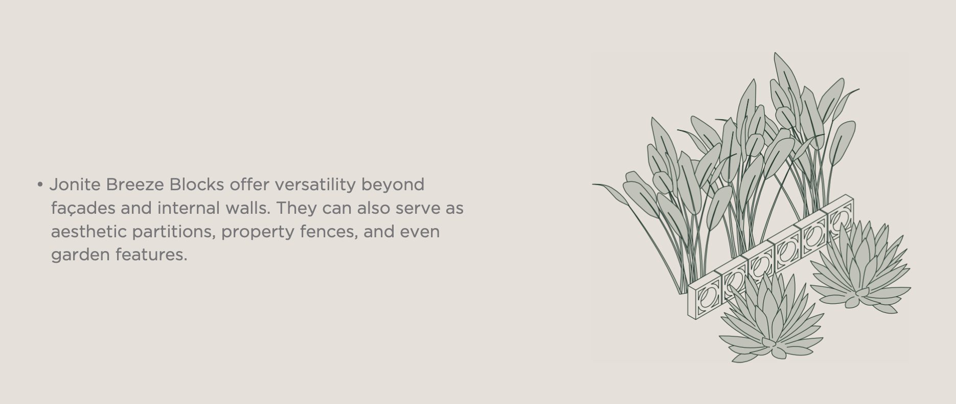 Beyond the conventional, Jonite Breeze Blocks manifest versatility. They serve as an excellent choice for external facades, interior feature walls, garden partitions, or ornamental installations, providing a canvas for architectural creativity.